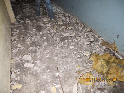 Berhati-hati kru PF melangkah akibat terlalu banyak kaca dan batu yang bersepah di atas lantai.